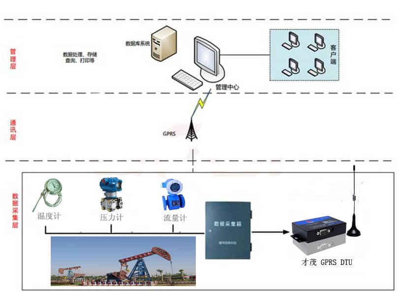 (3)数据采集功能:采集各种油井参数(如三相电流、 电压、示功图等),参数可由用户选择。